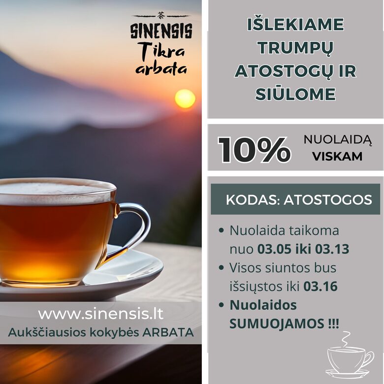 Pirkdami arbatą ar indus www.sinensis.lt svetainėje jūs visada gaunate garantiją, kad arbata yra šviežia ir labai kokybiška, patikrinta arbatos ekspertų ir be jokių cheminių priedų!